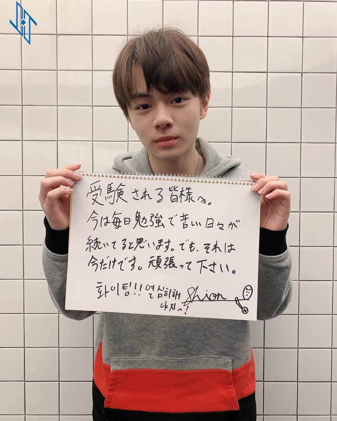 Shion’s Messages to exams takers! “At this moment, i believed everyone are going through a hard time due to studying. But you only go through those hardship now. Please do your best!! Hwaiting! Do your best!!”