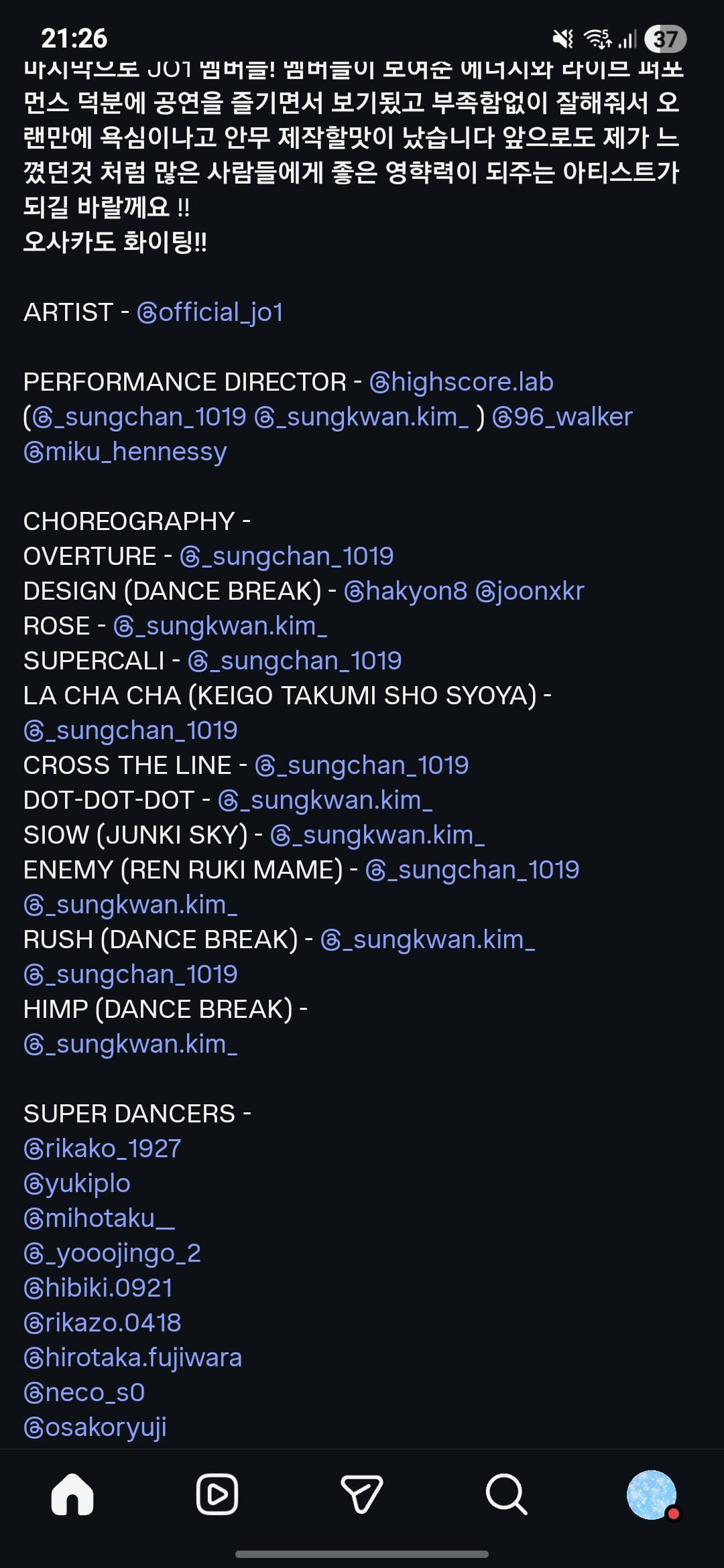 a choreographer of JO1 postet thisKeigo, Takumi, Sho, Syoya: LA CHA CHAJunki, Sky: SIOWRen, Ruki, Mame: ENEMY JO1Related Posts Ren Instagram Update (260410) – Thank you for JO1DER SHOW 2026 ‘EIEN 永縁’ at Tokyo Dome 🧚🌲🪷 April 10, 2026 JO1 TikTok Update with Syoya (260410) – I got the size wrong 🥺 April 10, 2026 [J-LOG2] JO1’S VLOG – Kinjo Sukai & Mamehara Issei – Greeting the New Year with Waterfall Training April 10, 2026